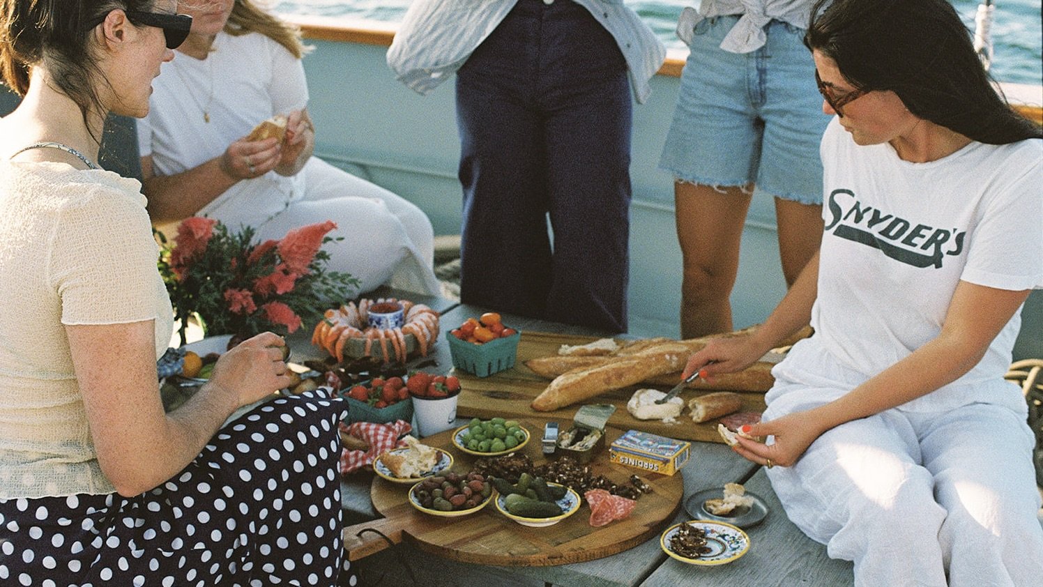 Aboard Frances we uniquely offer large open deck seating with a sweet little nook between our mainmast and main cabin for picnics and lounging. We work almost exclusively with Lake + Co catering for our private events. Based in Yarmouth, Maine, Lake + Co delivers impeccable food with the most beautiful display that always proves to be the centerpiece of every charter.